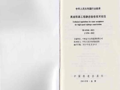 现发布“高速铁路工程静态验收技术规范》(TB10760-2013),白2013年2月24日起施行:铁道部前发《客运专线铁路工程静态验收指号意见》(铁建设【2009】183号】同时废止。