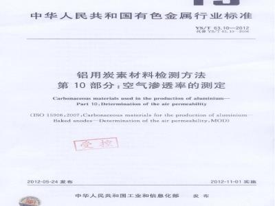 YS/T63《铝用炭素材料检测方法》共有26部分:YS/T63.10-2012