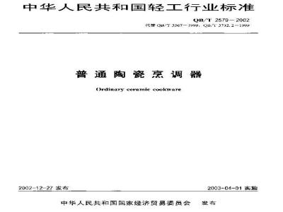本标准规定了普通陶瓷烹调器的产品分类、要求、试验方法、检验规则和标志、包装、运输、贮存。本标准适用于普通陶瓷烹调器皿。 QB/T 2579-2002 普通陶瓷烹调器 QB/T2579-2002 标准下载解压密码:www.bzxz.net