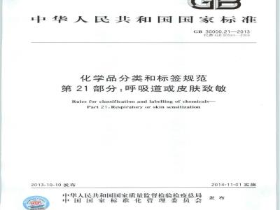 Rules for classification and labelling of chemicals-Part 21:Respiratory or skin sensitization2013-10-10发布