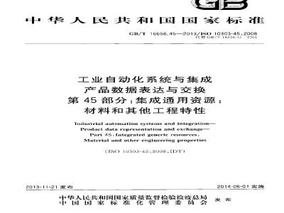 中文名称:工业自动化系统与集成 产品数据表达与交换 第45部分:集成通用资源:材料和其他工程特性