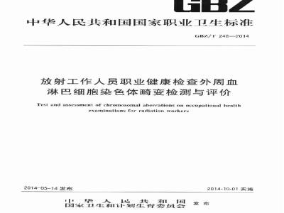 GBZ/T 248-2014 放射工作人员职业健康检查外周血淋巴细胞染色体畸变检测与评价