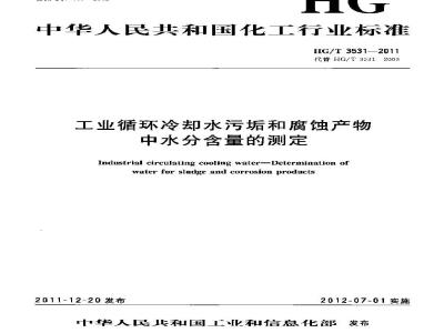 工业循环冷却水污垢和魔蚀产物中水分含量的测定HG/T 35312011
