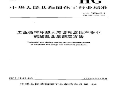 52003%工业循环冷却水污垢和腐蚀产物中硫酸盐含量测定方法)。本标准代荐HG/T3533