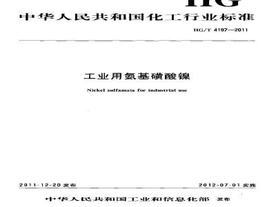 本标准规定了工业用氢基磺酸镍的要求、试验方法,检验规则及标志,包装、运输和贮存。本标推用于以含镍度料、镍盐金属像为原料制得的工业用氢基磺酸镍。2 规范性引用文件