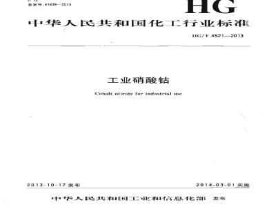 4.2工业硝酸钻按本标准的试验方法检测成衍合表1技术要求IIG/T4521—2013