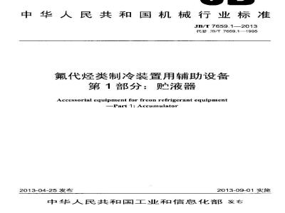 JB/T7659《氟代烃类制冷装用辅助设备》分为四个部分:-第1部分:贮液器: