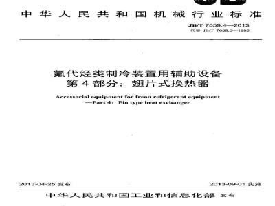 JB/T 7659.4-2013 氟代烃类制冷装置用辅助设备 第4部分:翅片式换热器