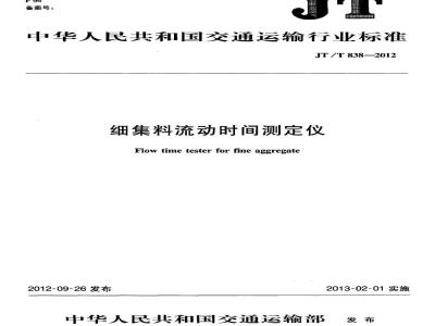 7.1细集料流动时间测定仪的检验分型式检验和出厂检验。JT/T838—2012