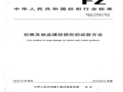 本标准按照GB/T1.【--2009给出的规则起草。本标准代替FZ/T01032—1993织物及其制品缝纫损伤的测定》。本标准与FZ/T010321993相比,主要变化如下:FZ/T 01032—2012
