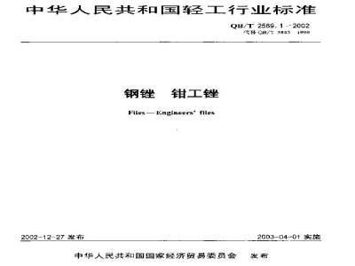 本标准规定了钳工锉的产品分类、要求、试验方法、检验规则、标志、包装、运输、贮存。本标准适用于钳工锉。当产品有特殊要求时,可不受本标准限制。 QB/T 2569.1-2002 钢锉 钳工锉 QB/T2569.1-2002 标准下载解压密码:www.bzxz.net