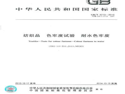 GB/T 5713-2013 纺织品 色牢度试验 耐水色牢度