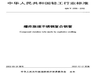 本标准规定了采用爆炸胀接法生产的不锈钢复合钢管的技术要求、试验方法、检验规则及标志、包装和质量证明书。本标准适用于外径50mm~500mm,基层为碳钢,复层为不锈钢,复合比6:1~3的爆炸胀接不锈钢复合钢管(以下简称“胀接复合钢管”) QB/T 2558-2002 爆炸胀接不锈钢复合钢管 QB/T2558-2002 标准下载解压密码:www.bzxz.net