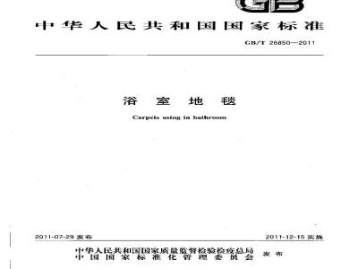 本标谁规定了浴室地毯(含浴室用块和链垫)的术语和定义、产品分类、要求,试验方法,检验规则、标志、标签和包装、运输、存。本标谁适用于以化纤棉、羊毛及混纺纤维构成的毯面源材料制作的有绒头或无绒头的机制或手工浴室用地毯和毯垫的品质判定,其他如门前、客厅、床头毯垫以及多用毯垫等或以其他纤维材料制作的浴室地毯也可参照使用。