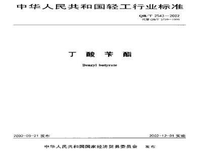 本标准规定了丁酸苄酯的技术要求、试验方法、检验规则和标志、包装、运输、贮存。本标准适用于以丁酸和苄酯为原料经化学合成制得的丁酸苄酯。 QB/T 2543-2002 丁酸苄酯 QB/T2543-2002 标准下载解压密码:www.bzxz.net