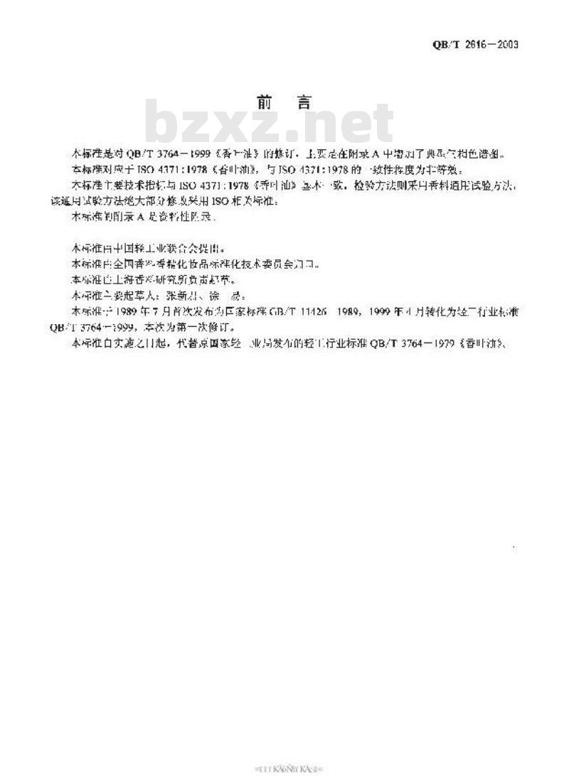 本师准后中国轻工业获合会提出。本标准户全同香必香粘化收品标萍化技术委员会门司.本你滩上海否研究所资黄起节。本准二要起草人:张新力、徐品:本际准:1989年7月首款发布为巨家标降GB/1142斤1989,1999年月转化为经一行业准QB3764-999,本次为第一次候订。本标准白实施之门起,代替京国家些业尚发布的轻1.行业标雅QB/T3764一1979香叶汁3HTKANIYKAa