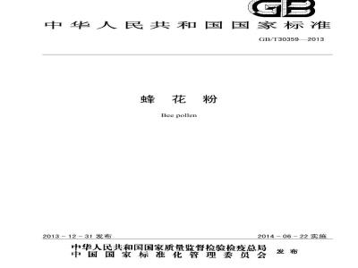 本标准最初于1989年发布,后调整为行业标准(GH/T1014-1999)。现重新修订为国家标准。本标准与GB/T11758-1989《蜂花粉》相比主要变化如下:一修订了标准的适用范围,术语、定义;一蜂花粉的质量等级由三个等级改为二个等级:删除了过氧化氢酶、维生素C指标;一理化指标中增加脂肪、总糖、黄酮类化合物、酸度、过氧化值指标:修订了蛋白质、水分、灰分、单一品种花粉率的检测方法;修订了附录A、附录B,增加了资料性附录C;本标准的附录A、B是规范性附录,附录C是资料性附录,本标准由中华全国供销合作总社提出并归口。本标准起草单位:杭州澳医保灵药业有限公司、国家轻工业食品质量监督检测杭州站本标准主要起草人:胡晓岚虞英民赵志良朱金梁徐承志楼晓燕