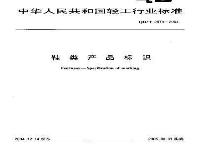 长期以来鞋类产品没有纯一的标!规定,标注不准阐,为容不规范,纷牛产企业、销舟企业,特别是广大消费等齿来极大的不便。H前我困的制鞋业在飞速发展,追切需要一个科学,合理,规范,统的类产品标识标准。