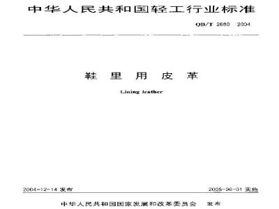 本标准规定了鞋里用皮革的要求、试验方法、分级、检验规则和标志、包装、运输、贮存。本标准适用于用各种动物皮加工生产的鞋里用皮革。 QB/T 2680-2004 鞋里用皮革 QB/T2680-2004 标准下载解压密码:www.bzxz.net