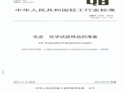 将“本国际标准”改为“本标准”本标准由中国轻工业联合会提出。本标准由全国皮革工业标准化技术委员会(SAC/TC252)归口:本标准起草单位:桐乡市浙家裘革服饰有限公司、嘉兴市皮毛和制鞋工业研究所、中国皮革和制鞋工业研究院、浙江经纬公证检验行有限公司。本标准主要起草人:张文军、钱宏亮、庄莉、姜苏杰、赵立国、袁绪政。本标准于1992年6月首次发布为原轻工行业标准QB/T1272一1991,本次为第一次修订。本标准自实施之日起,代替原轻工行业标准QB/T1272一1991《毛皮成品化学分析试样的制备及化学分析通则》
