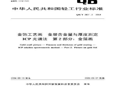 中文名称:金饰工艺画?金层含金量与厚度测定ICP光谱法?第2部分:金箔画
