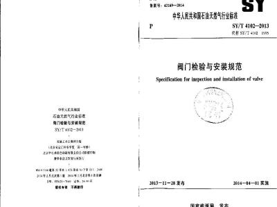 Specification for inispeclion and installation of valveSY/T4102—2013
