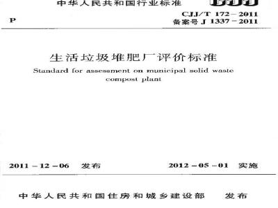 CJJ/T 172-2011 生活垃圾堆肥厂评价标准
