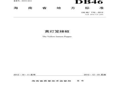 本标准按照GB/T1.1-2009给出的规则起草本标准是对DB46/T70-2006《黄灯笼辣椒》的修订。本标准与DB46/T70-2006的主要差异:DB46/T70—2012