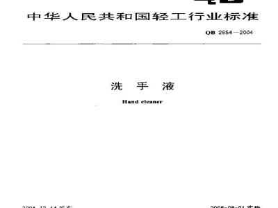 本标准规定了洗手液产品的要求、试验方法、检验规则和标志、包装、运输、贮存。本标准适用于主要以表面活性剂和调理剂配制而成的,具有清洁功能的洗手液产品(不适用于非水洗型产品)。 QB 2654-2004 洗手液 QB2654-2004 标准下载解压密码:www.bzxz.net