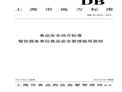 DB31 2015-2013 食品安全地方标准 餐饮服务食品安全管理指南