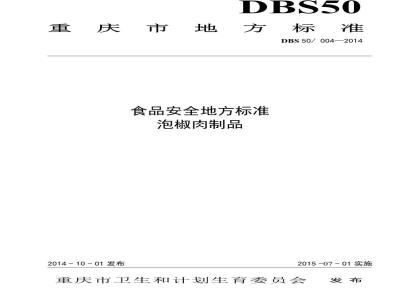 DBS50 004-2014 食品安全地方标准 泡椒肉制品