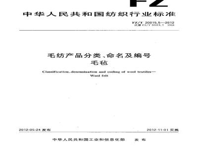 FZ/T 20015.5-2012 毛纺产品分类、命名及编号 毛毡