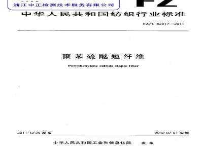 FZ/T 52017-2011 聚苯硫醚短纤维