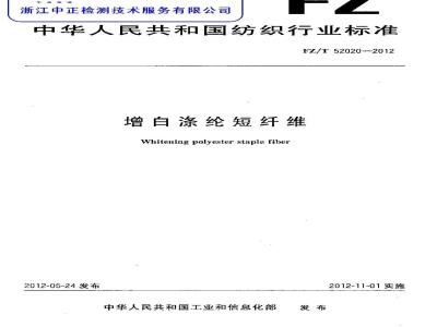 本标准适用于线密度为1.33dtex~2.22dtex的阅形截面增白涤纶短纤维。其他规格及类型的增白涤纶短纤维可参照使用。