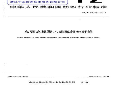 FZ/T 52023-2012 高强高模聚乙烯醇超短纤维