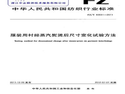 FZ/T 60031-2011 服装用衬经蒸汽熨烫后尺寸变化试验方法