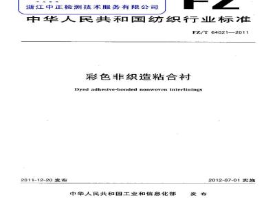 FZ/T 64021-2011 彩色非织造粘合衬