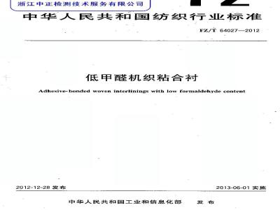 FZ/T 64027-2012 低甲醛机织粘合衬