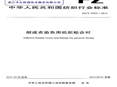 FZ/T 64031-2012 耐成衣染色用机织粘合衬