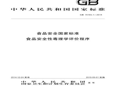 GB 15193.1-2014 食品安全国家标准 食品安全性毒理学评价程序
