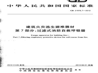 GB 21976.7-2012 建筑火灾逃生避难器材 第7部分:过滤式消防自救呼吸器