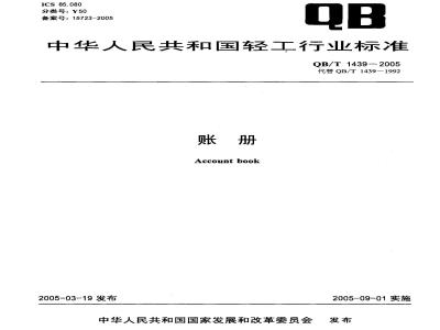 本标准是对QB/T1439一1992《账册》的修订。本标准与QB/T1439一1992相比,主要变化如下:增加了产品分类中按装订形式分为订本账和活页账两类(本标准的3.2);修订后质量不再分级,指标值基本上沿用原一等品要求(表1);QB/T1439—2005