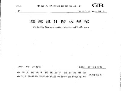 现批准《建约设许防火规范》为国家标准,编号为GB500162014,自2015年5川1日起实施。其,第3.2.2、3.2.3、3.2.4、3.2.7、3.2.9、3.2.15、3.3.1、3.3.2、3.3.4、3.3.5、3.3.6(2)、3.3.8、3.3.9、3.4.1、3.4.2、3.4.4、3.4.9、3.5.1、3.5.2、3.6.2、3.6.6、3.6.8、3. 6. 11、3.6.12、3. 7.2、3.7.3、3.7.6、3.8.2、3.8.3、3.8.7、4.1.2、4. 1. 3、4. 2. 1、1. 2. 2、1. 2. 3、4. 2.5 (3、4、5、6)、4. 3. 1、4. 3. 2、4. 3. 3、4. 3. 8、4. 1. 1、4. 4. 2、4. 4. 5、5. 1. 3、5. 1. 4、5. 2. 2、5. 2. 6、5. 3. 1、5. 3. 2、5. 3. 4、5. 3. 3、5. 4. 2、5. 4. 3、5,4. 4(1、2、3,4)、5. 4. 5、5. 4. 6、5. 1. 9 <1、4、h、6)、5. 4. 10 (1、2>.5. 4. 11、5. 4. 12、5. 4. 13 (2、3、4、5、6)、5. 4. 15 (1、2)、5. 4. 17 (1、2、3、4、5)、5. 5. 8、5. 5. 12、5. 5. 13、5. 5. 15、5. 6. 16 (1)、5. 5. 17、5. 5.18、5. 5. 21 (1、2、3、4)、5. 5. 23、6. 5. 24、5. 6. 25、5.5.26、5. 5. 29、5. 5.30、5. 5. 31、6. 1. 1、6.1. 2、6. 1. 5、6. 1. 7、6.2. 2、6.2、4、6. 2. 5、6.2.6、6.2.7、6. 2.9 (1、2、3)、6. 3.5、6. 4. 1 (2、3、4、5、6)、6. 4. 2、6. 4.8 (1、、4、5、6)、6.4.4、6.4.5、6.4.10、6.4.11、6.6.2、8.7.2、6.7.4、6.7.5、6.7.6、7.1.2、7. 1. 3、7. 1. 8 (1、2、3)、7.2. 1、7. 2. 2 (1、2、32、7. 2. 3、7.2.4、7. 3. 1、7. 3. 2、7. 3. 5(2、3、4)、7. 3. 6、8. 1.2、8. 1. 3、8. 1. 6、8. 1. 7(1、3、4)、8. 1.8、8. 2.1、8. 3. 1、8.3.2、8. 3. 3、8. 3. 4、8. 3.5、8. 3. 7、8.3. 8、8. 3. 9、8. 3. 10、8. 4. 1、8. 4. 3、8. 5. 1、8. 5. 2、8. 5. 3、8. 5.4、9. 1.2、9. 1.3、9.1. 4、9.2.2、9.2. 3、9. 3. 2、9.3. 5、9. 3. 8、9. 3、9、9.3. 11、9. 3. 16、10.1.1、10,1.2、10.1.5、10.=.6、10.1.8、10.1.10 (1、2)、10.2.1、10.2.4、10.3.1)10. 3. 2、10. 3. 3、11. 0. 3、11. 0. 4、11. 0. 7 (2、3、4)、11. 0.9、11. 0. 10、12. 1. 3、12. 1. 4,12.3.1、12.5.1、12.5.4条(款)为强制性条文,必须严格执行。原《建筑设计防火规范》GB50016-2006和《高层展周建筑设计防火规范》GB50045-95同时度l:。本规范回浅部探推定额研究所红织中围计划出版社出版发行。中华人氏共利国住房租城乡建设部公告〇一四八月二七国