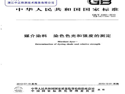 GB/T 2380-2013 媒介染料 染色色光和强度的测定