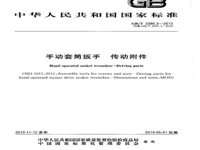 GB/T3390《手动套筒板手》为系列国家标准,现由5项标准组成:-GB/T3390.1手动套简扳乎套筒;GB/T3390.2手动套筒扳手1