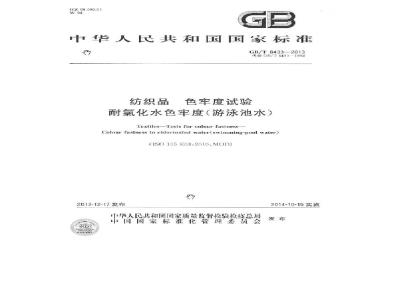 GB/T 8433-2013 纺织品 色牢度试验 耐氯化水色牢度(游泳池水)
