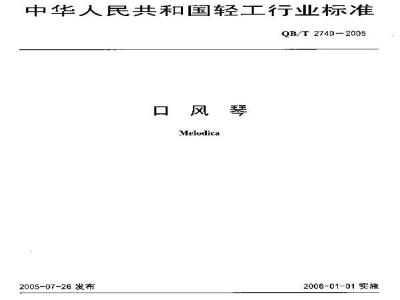 本标准规定了气鸣乐器口风琴的术语和定义、要求、试验方法、检验规则和标志、包装、运输、贮存。本标准适用于以铜质音簧为发音体的并带有键盘装置的口风琴。 QB/T 2740-2005 口风琴 QB/T2740-2005 标准下载解压密码:www.bzxz.net