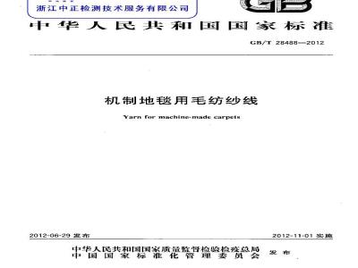 GB/T 28488-2012 机制地毯用毛纺纱线