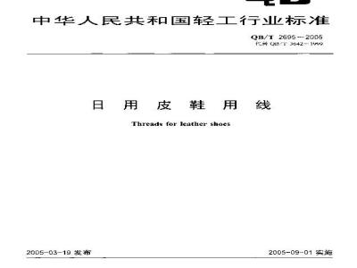 本标准规定了用于皮鞋缝帮、缝底等用途的缝纫线的分类、要求、试验方法、检验规则、包装标志和运输保管。本标准适用于一般穿用的皮鞋缝帮、缝底所用的缝纫线。本标准不适用于劳动、防护及特殊功能的皮鞋缝帮、缝底所用的缝纫线。 QB/T 2695-2005 日用皮鞋用线 QB/T2695-2005 标准下载解压密码:www.bzxz.net
