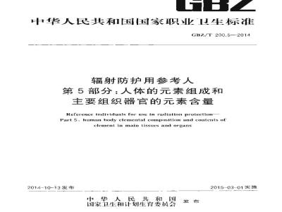GBZ/T 200.5-2014 辐射防护用参考人 第5部分:人体的元素组成和主要组织器官的元素含量